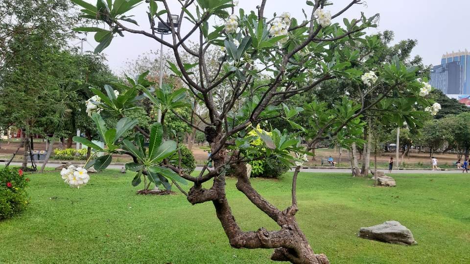 눔피니 공원에서 쉽니다. 호수 가운데에 있는 기계가 푸미폰 왕 한테서 수질 돌리려고 발명 됐습니다.