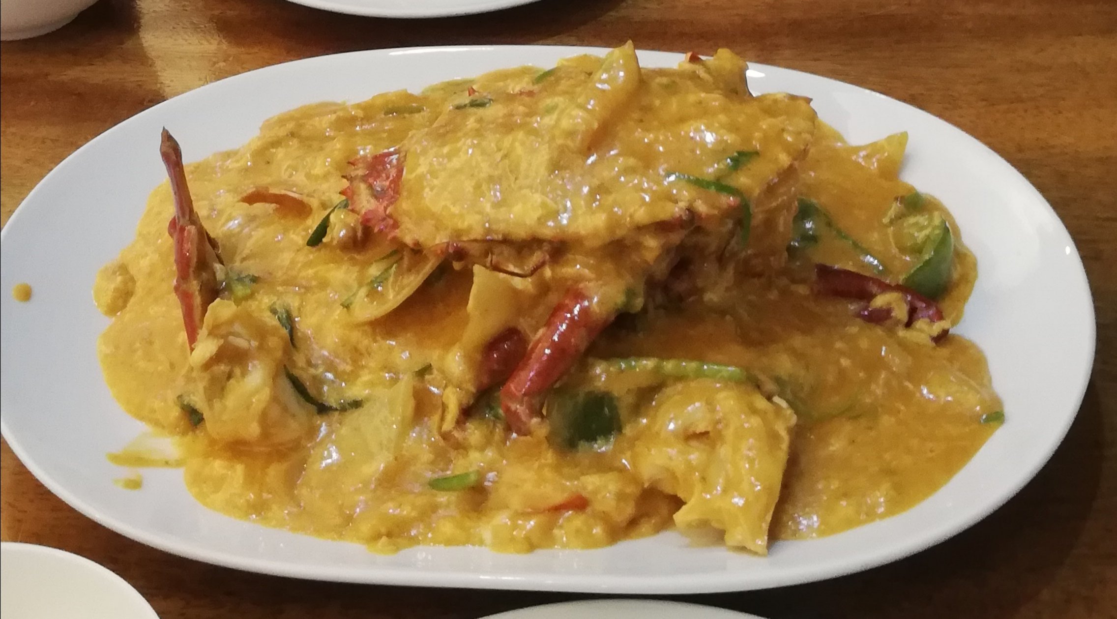 장거리 비행 후에 맛있는 꽃게를 먹습니다.