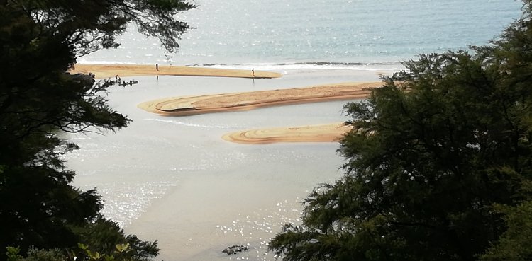 Am Mittag haben ein paar Wekas versucht, an unser Essen zu kommen. Von unserem Kayak-Guide wurden sie als Diebes-Hühner beschrieben. Sie haben offenbar gelernt, dass in den typischen Papiertüten oft Essen verpackt ist. Wir hatten zum Glück schon alles gegessen.