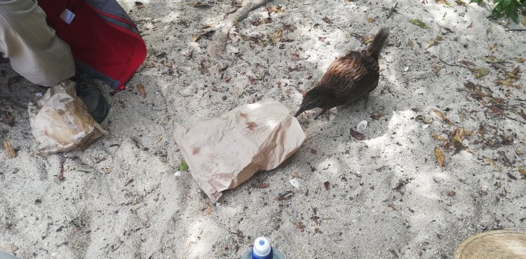 점심에 웨카들이 우리 음식 먹으려고 우리 옆으로 다가 왔습니다. 카약 가이드가 웨카가 도둑 닭이라고 설명 했습니다. 웨카가 종이팩에 음식이 있다고 배웠습니다. 우리가 벌써 다 먹어서 다행이었습니다.