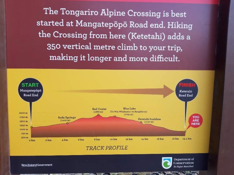 Die Wanderung beginnt am Mangatepopo Parkplatz ❶ und es geht zunächst recht gemütlich los. Wir sind nicht die einzigen, unzählige Busse bringen Scharen von Wanderlustigen an den Start.