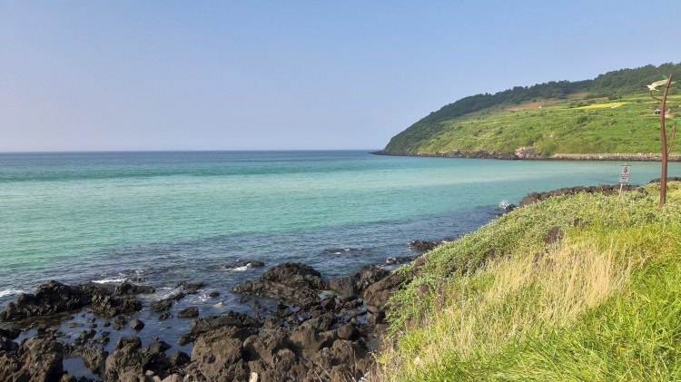 Nach einer ca 2-stündigen geführten Wanderung haben wir das schöne Wetter am Strand von Hamdeok genossen, bevor wir der Küste entlang zurück zu unserer Pension in Seongsan gefahren sind. Unterwegs haben wir eine Befestigungsmauer des koreanischen Forts Byeolbangjin aus dem 16.Jh. gesehen.