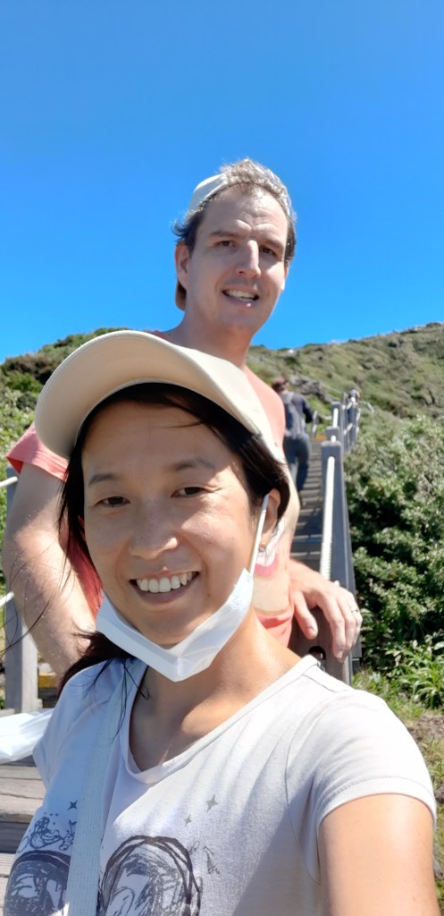 Der Hallasan ist der höchste Berg in Südkorea. Gestern sind wir den Yeongsil-Weg von 1280m bis zum Witsejogeunoreum auf ca 1700m gewandert. Von dort hatten wir einen schönen Ausblick auf den Gipfel (1950m) und die ganze Westseite von Jeju. Typisch für Korea ist der Weg gut gepflegt und ein grosser Teil des Aufstiegs ist mit Treppen ausgebaut.